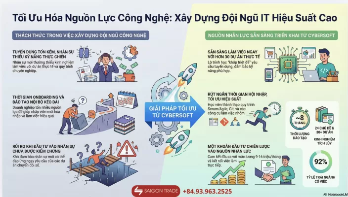Sự thành công của các lộ trình đào tạo chuyên biệt cho các tập đoàn đa quốc gia như Nam Á Bank, SCGP Thái Lan (Kraft Vina), Intimex Group hay An Phong chính là minh chứng thép cho uy tín của CyberSoft. Chúng tôi không cung cấp một khóa học sẵn có, chúng tôi thiết kế giải pháp dựa trên “nỗi đau” và mục tiêu riêng biệt của từng doanh nghiệp.