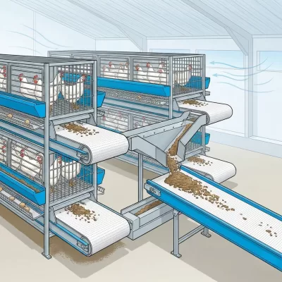 • Thu gom cục bộ: Phân từ mỗi tầng lồng rơi trực tiếp xuống băng tải riêng biệt, ngăn chặn hoàn toàn việc phân tầng trên rơi xuống tầng dưới.