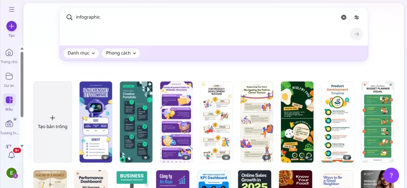 Canva cung cấp hàng ngàn mẫu template đa dạng cho mọi chủ đề. Đây là điểm khởi đầu tuyệt vời.